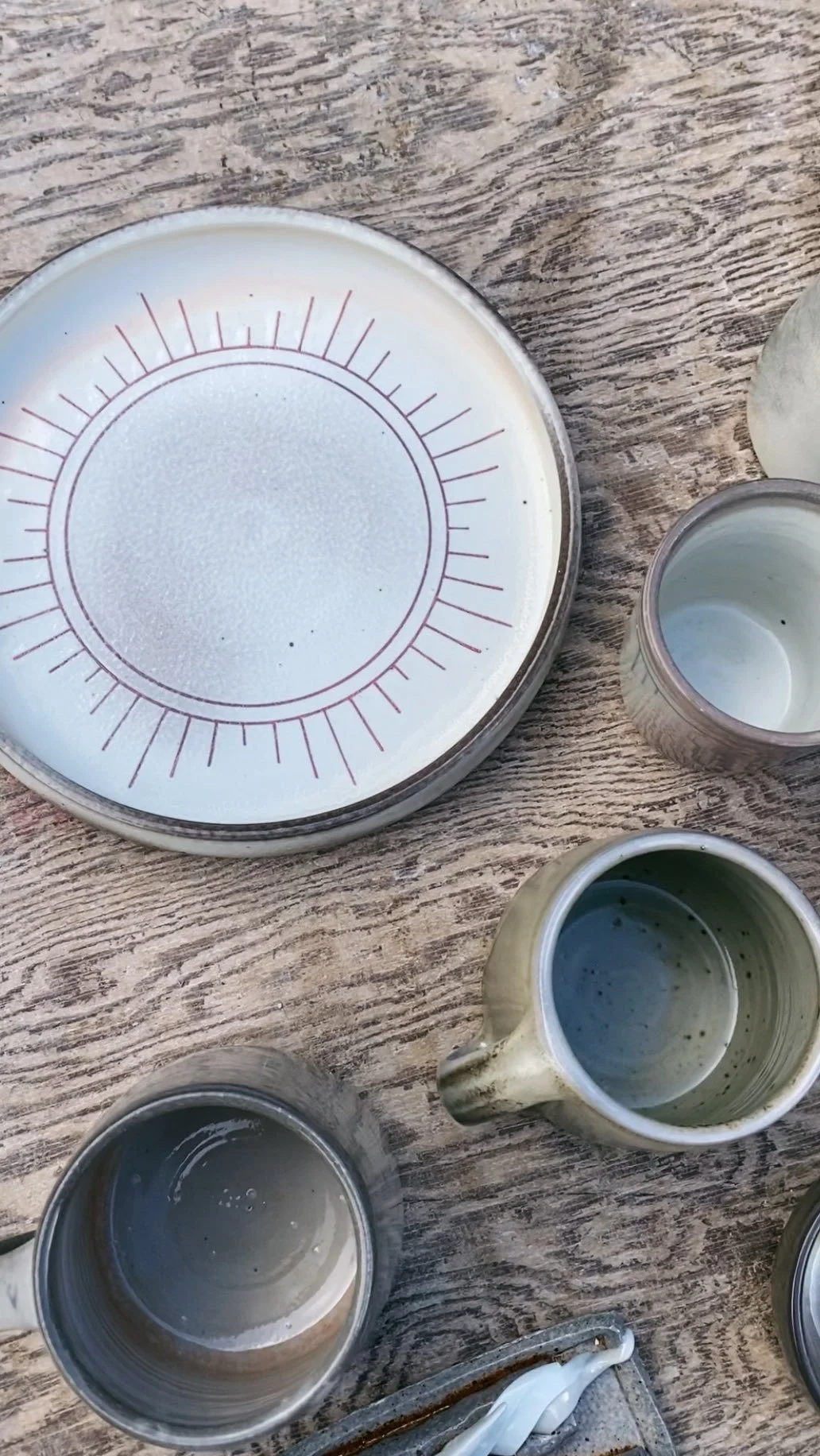 The darker lines on the rim are where the soda glaze hit and carbon trapping occurred in the glaze. A little bit of magic you hope for but can never guarantee.